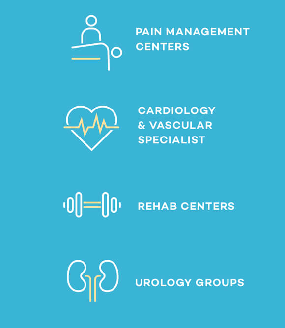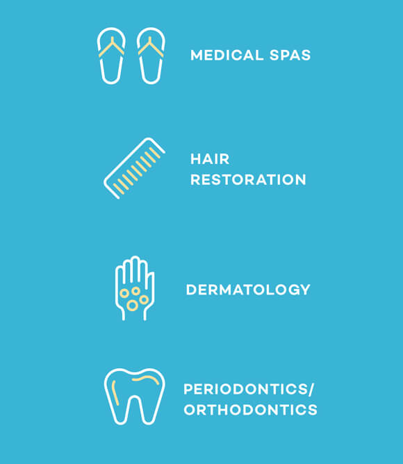 Based on brand guidelines, the set represents examples of specialty medical companies that can benefit from acquiring a PayJunction payment terminal.